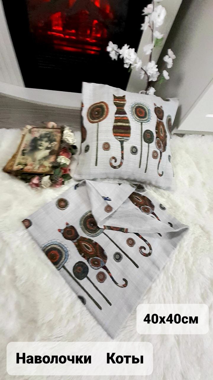 Наши изделия сшиты из ткани, состоящей из высококачественного 100% хлопка с плетением рогожка, очень схожи с льняным полотном, легко отстирываются, быстро сохнут, довольно легко гладятся и почти не мнутся. Благодаря качественным красителям оригинальные дизайнерские принты и текстура ткани, будут вас радовать, даже после многочисленных стирок (рекомендуемая температура 40 градусов без применения агрессивных отбеливателей). Оригинальные рисунки, такие как: вязаные разноцветные коты, черные котята, гуляющие сами по себе по нотам, очаровательный Анютины глазки и букетики лаванды обязательно обратят на себя внимание гостей и вызовут у них улыбку. Благодаря натуральному составу ткани, наша многоразовая декоративная наволочка из хлопчатобумажной ткани не менее практична, и гораздо более экологична и гипоаллергенна, чем изделия из ярких синтетических тканей.